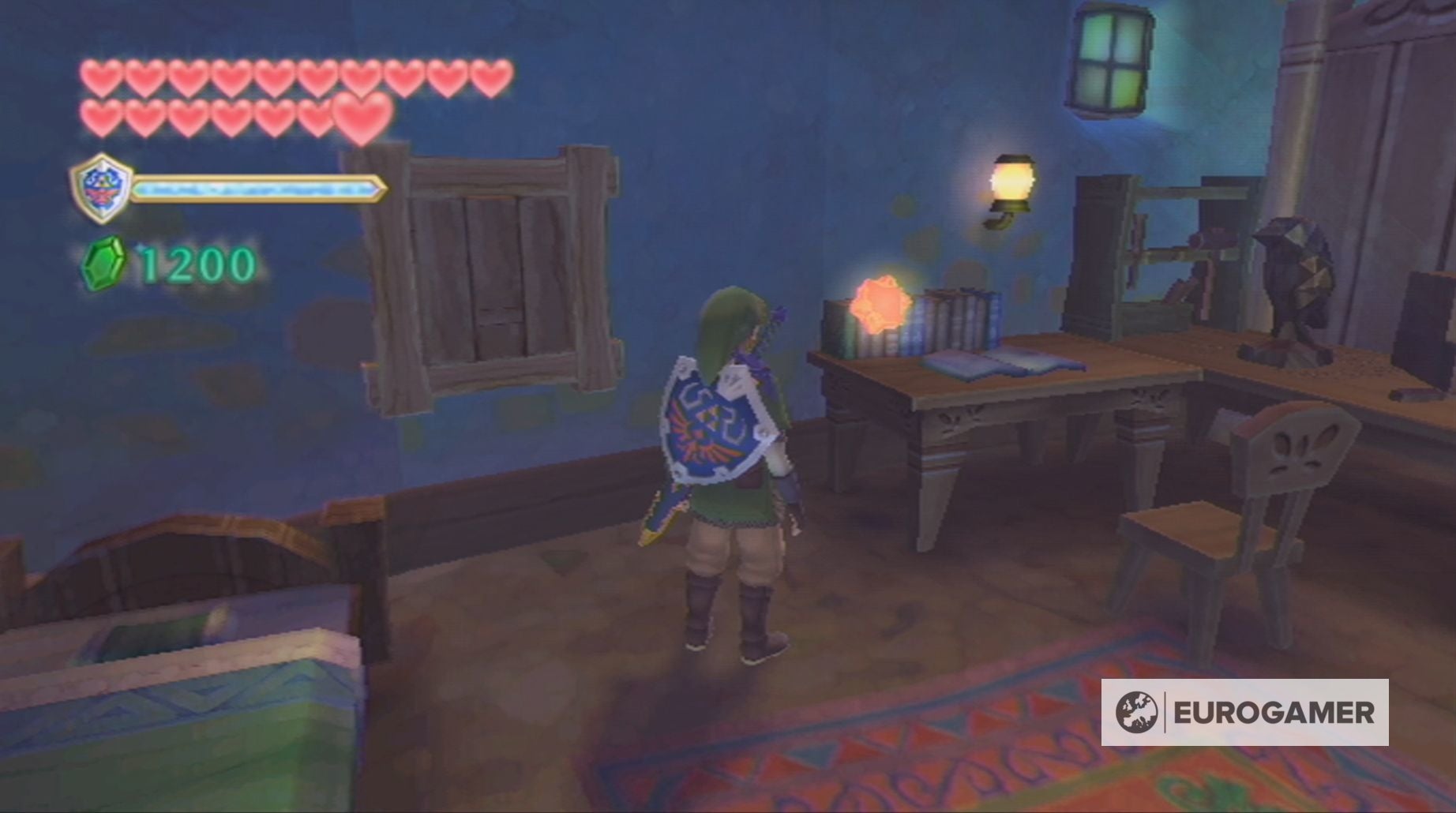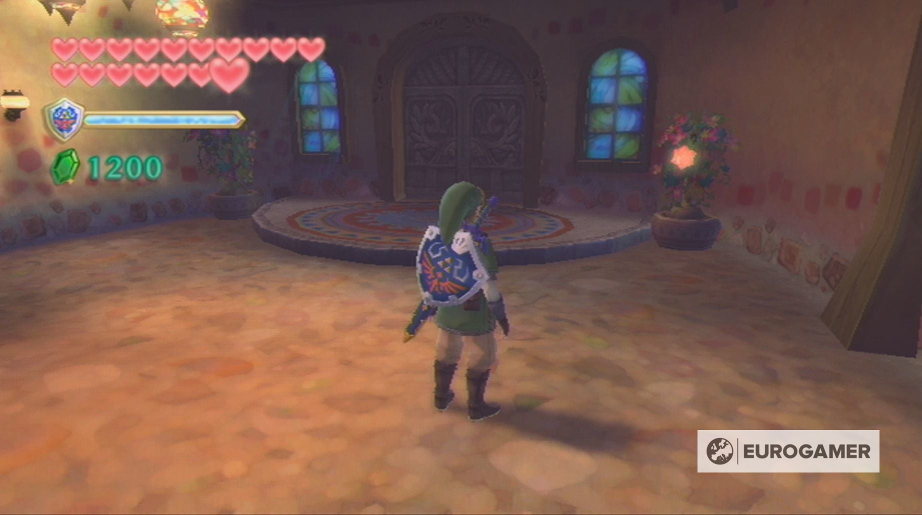 Als je al in haar kamer bent geweest voor het Hartstukje, dan kom je simpelweg binnen langs het bed. Wanneer dat niet zo is, dan moet je wachten tot je de Grijpklauwen ontgrendelt door de Rijk der Stilte challenge in de Lanayru-woestijn te voltooien.