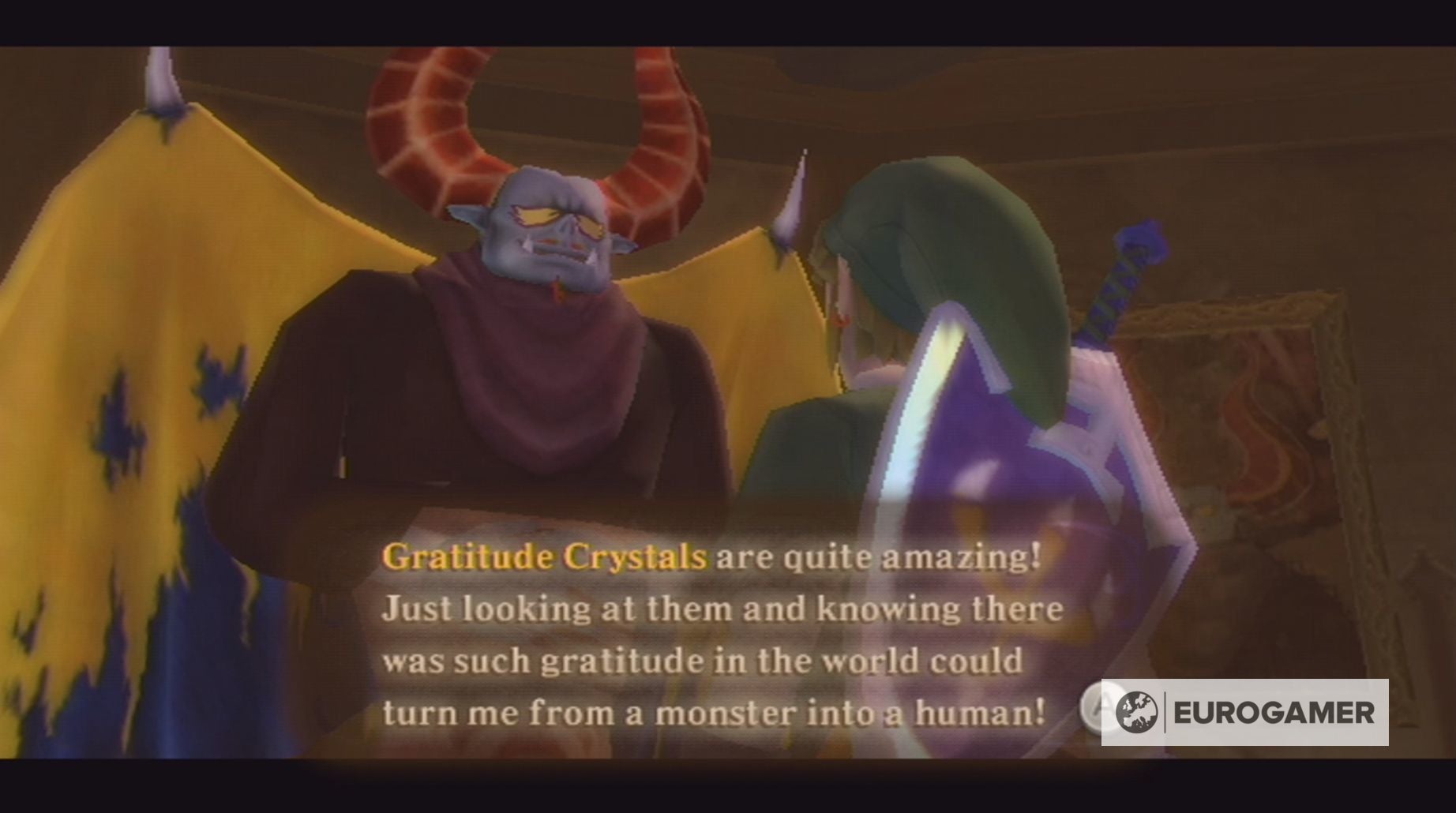 Door Dankbaarheidskristallen te verzamelen in Skyward Sword, krijg je verscheidene beloningen - van een Hartstukje tot upgrades voor je beurs - die erg nuttig zullen zijn op je avontuur.