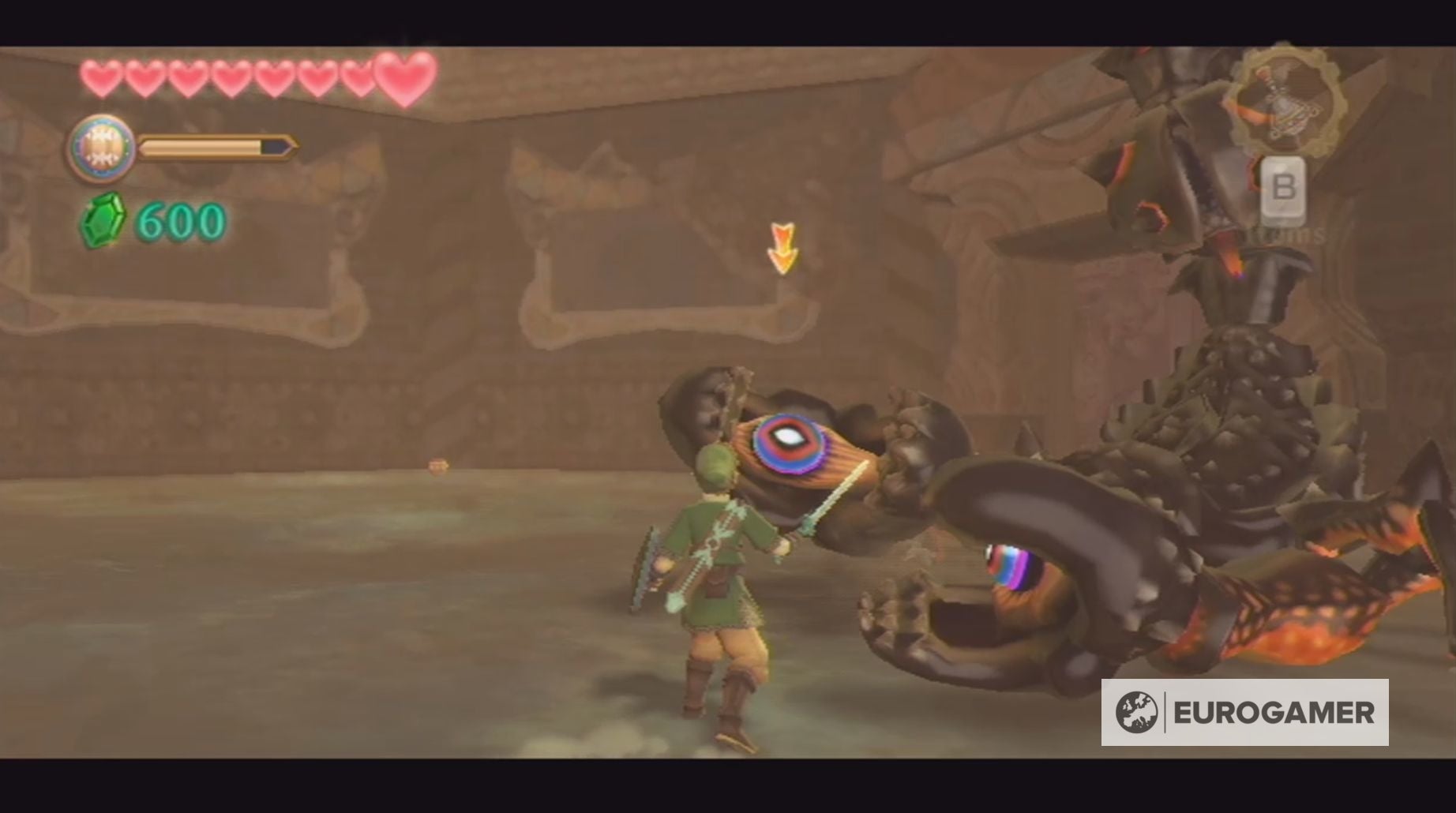 Het eerste deel van het gevecht met Moldarach is redelijk simpel - je moet de ogen, die hij vasthoudt in zijn klauwen, raken met Links zwaard.